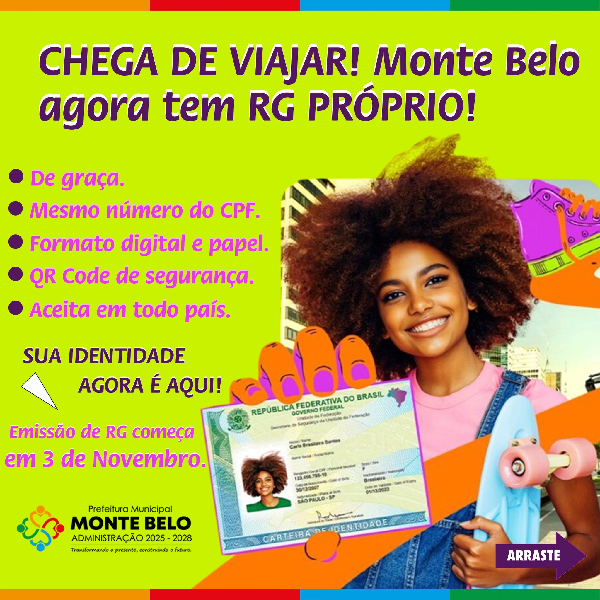 DIA 03 DE NOVEMBRO COMEÇA A EMISSÃO DE CARTEIRA DE IDENTIDADE EM MONTE BELO MG
