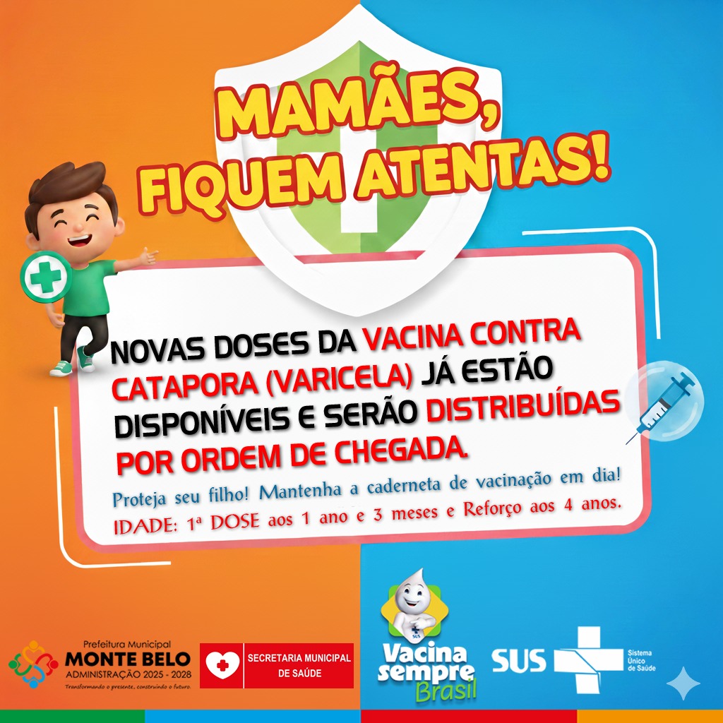 MAMÃES, FIQUEM ATENTAS! NOVAS DOSES DA VACINA CONTRA CATAPORA (VARICELA) JÁ ESTÃO DISPONÍVEIS