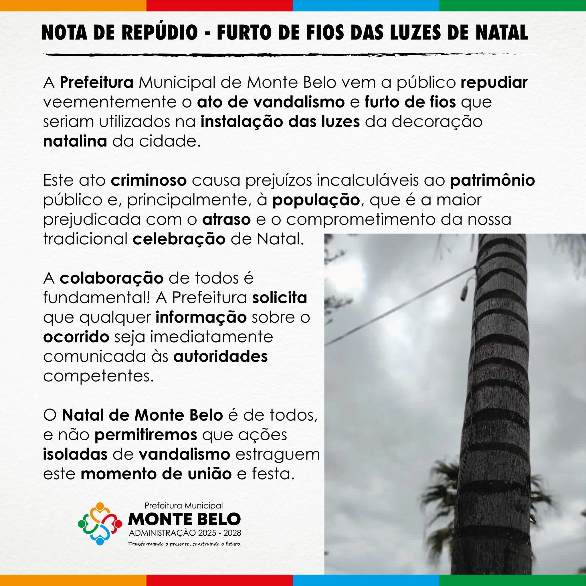 NOTA DE REPÚDIO - FURTO DE FIOS DAS LUZES DE NATAL