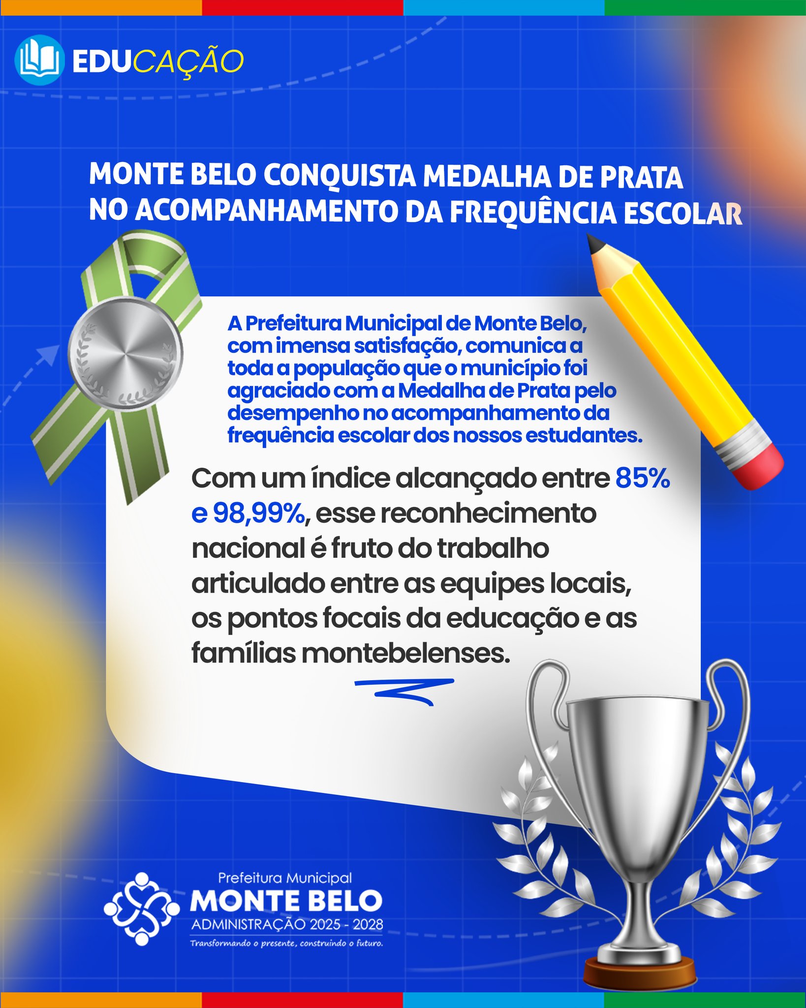 MONTE BELO CONQUISTA MEDALHA DE PRATA NO ACOMPANHAMENTO DA FREQUÊNCIA ESCOLAR