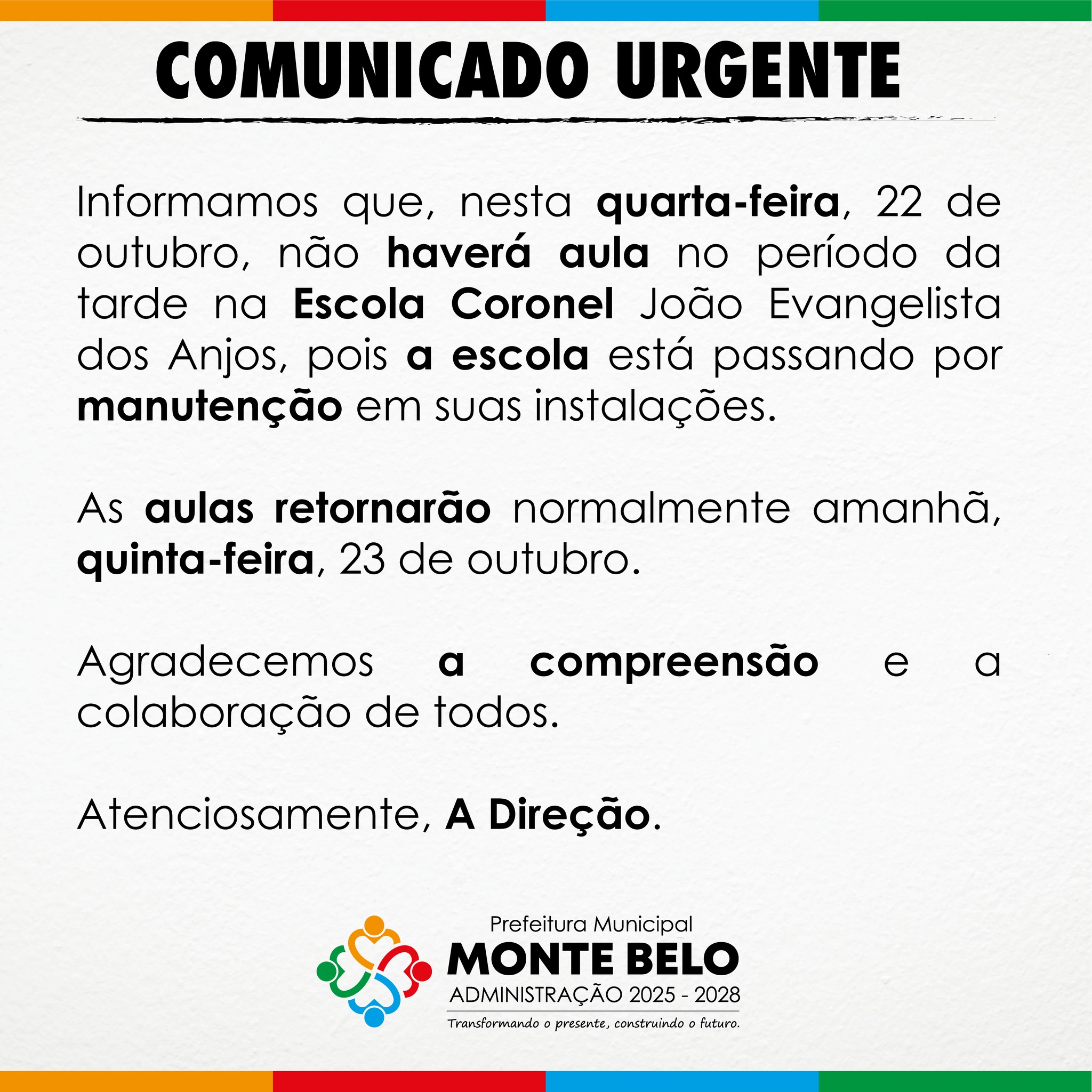COMUNICADO URGENTE DA ESCOLA CORONEL