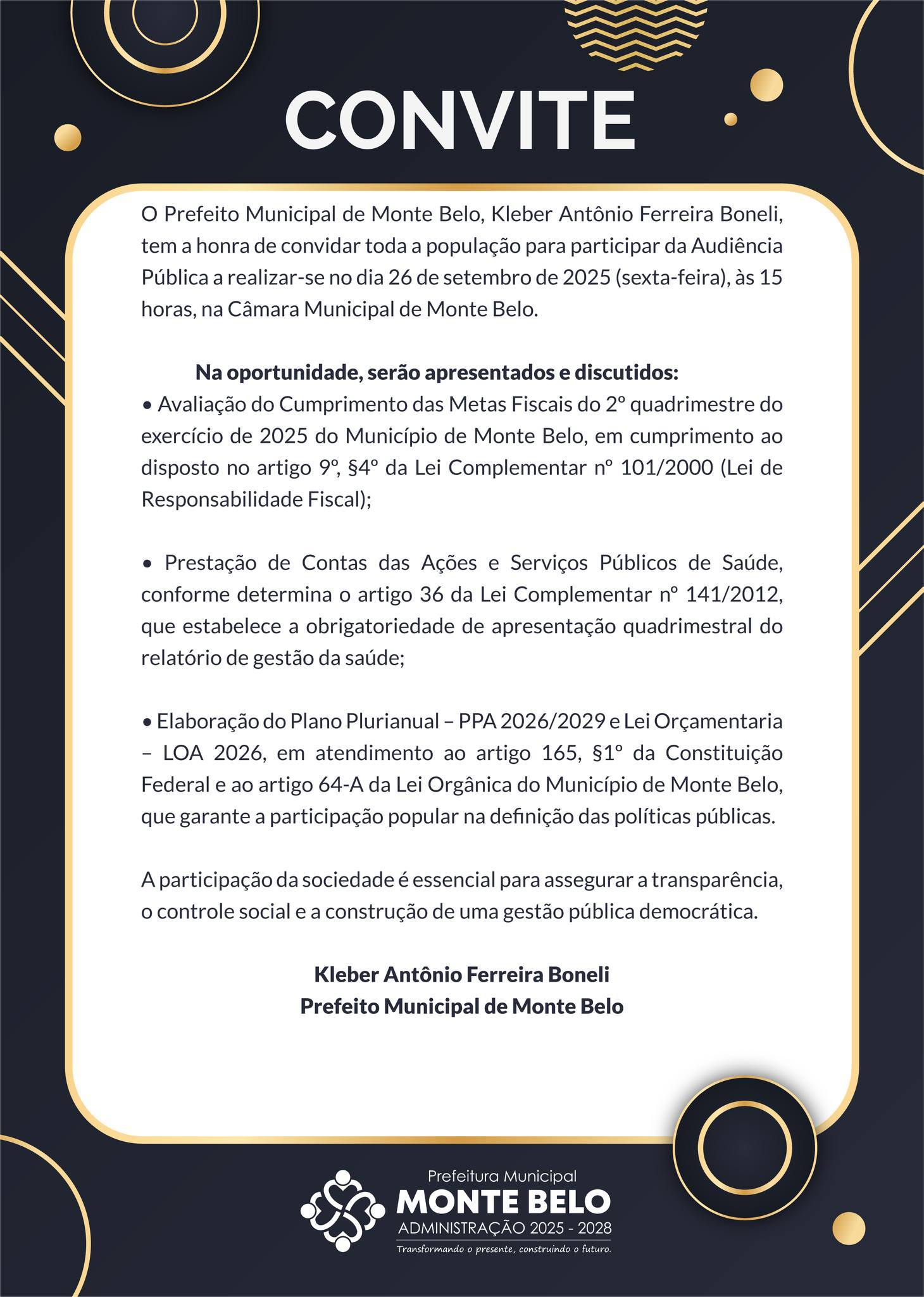 CONVITE PARA AUDIÊNCIA PÚBLICA