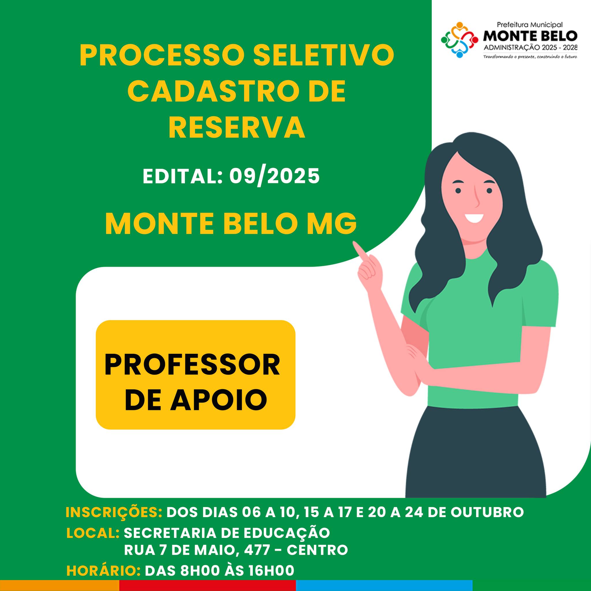 PROCESSO SELETIVO CADASTRO DE RESERVA PARA O CARGO DE PROFESSOR DE APOIO - EDITAL 09/2025.