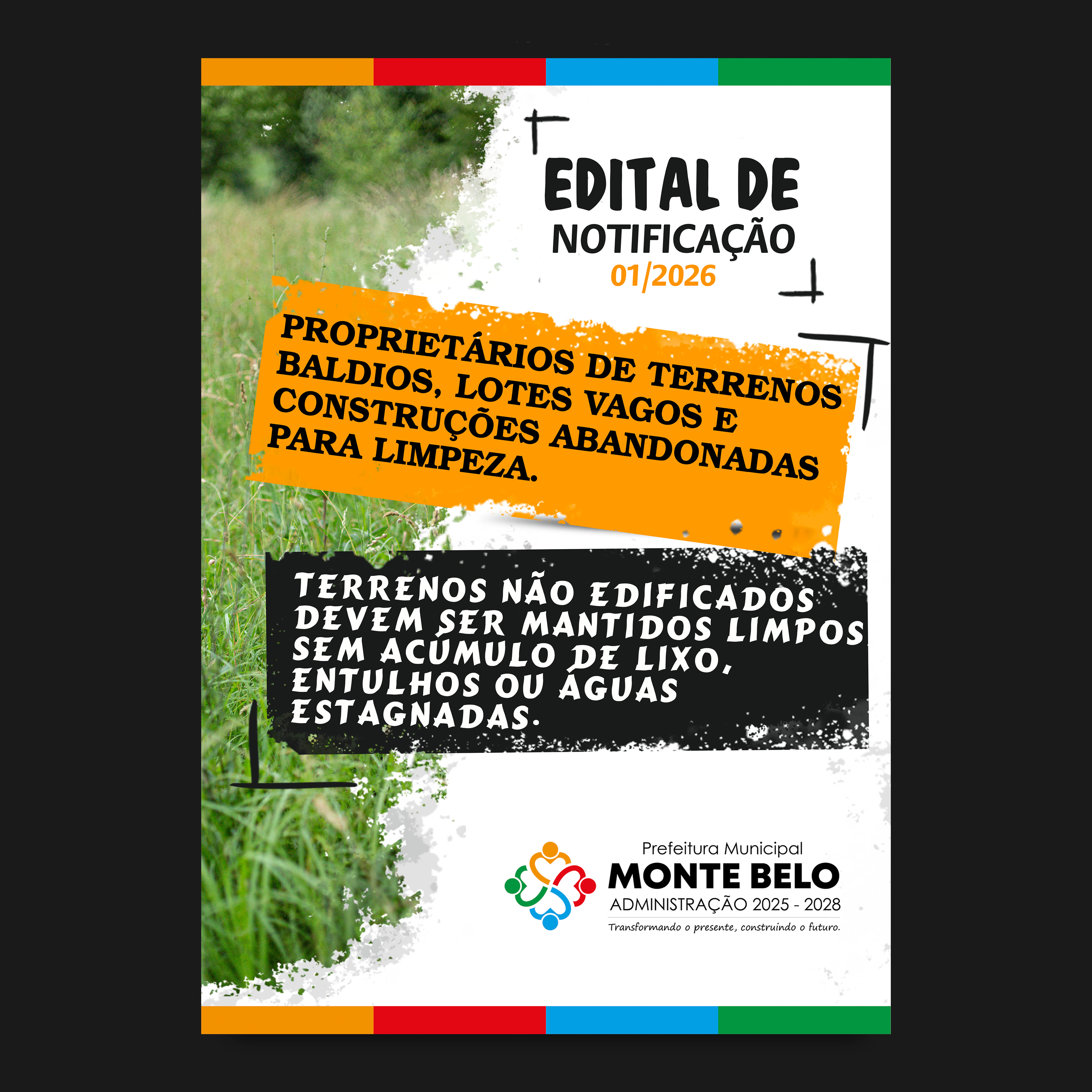 EDITAL DE NOTIFICAÇÃO Nº 01/2026 - NOTIFICA PROPRIETÁRIOS DE TERRENOS