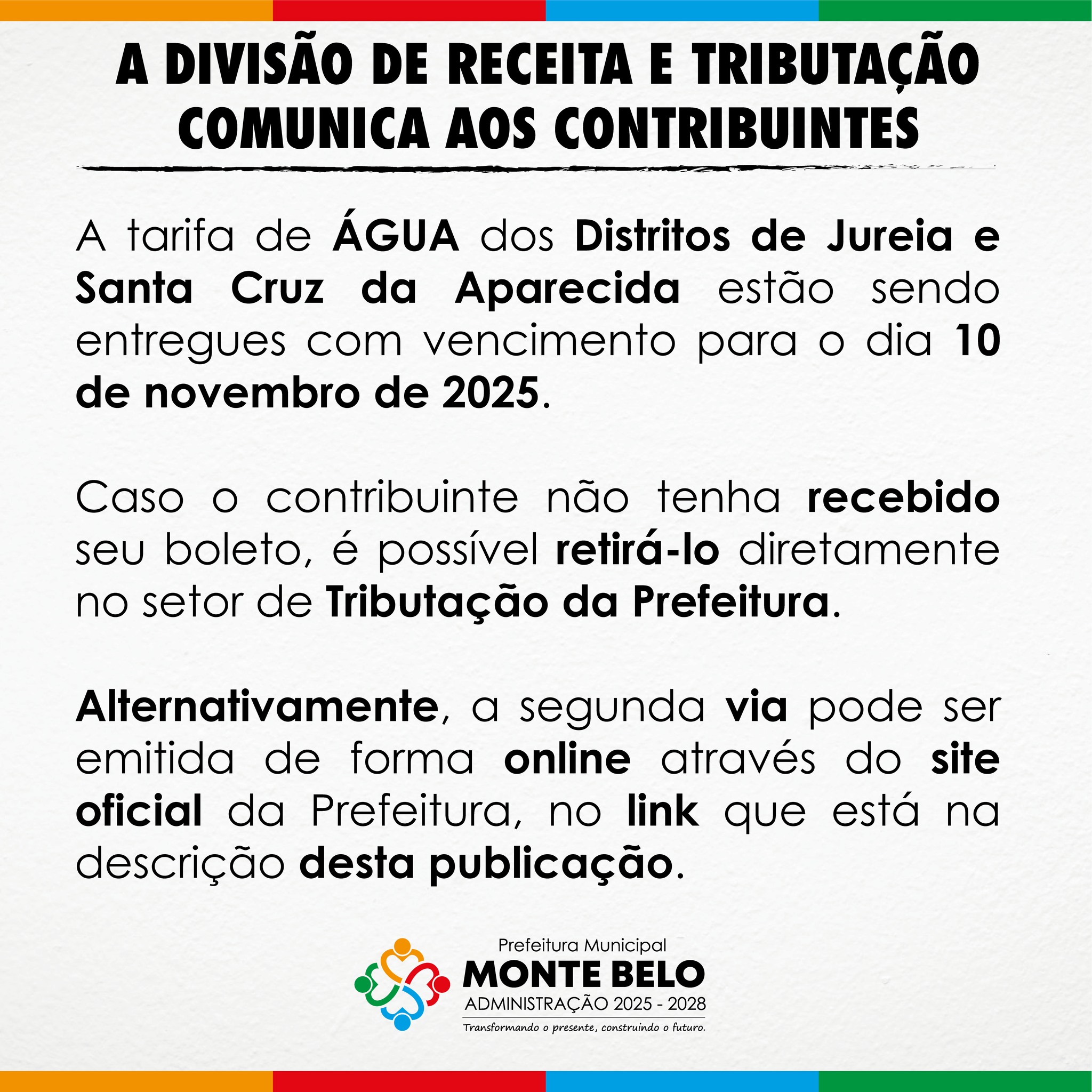 A DIVISÃO DE RECEITA E TRIBUTAÇÃO COMUNICA AOS CONTRIBUINTES